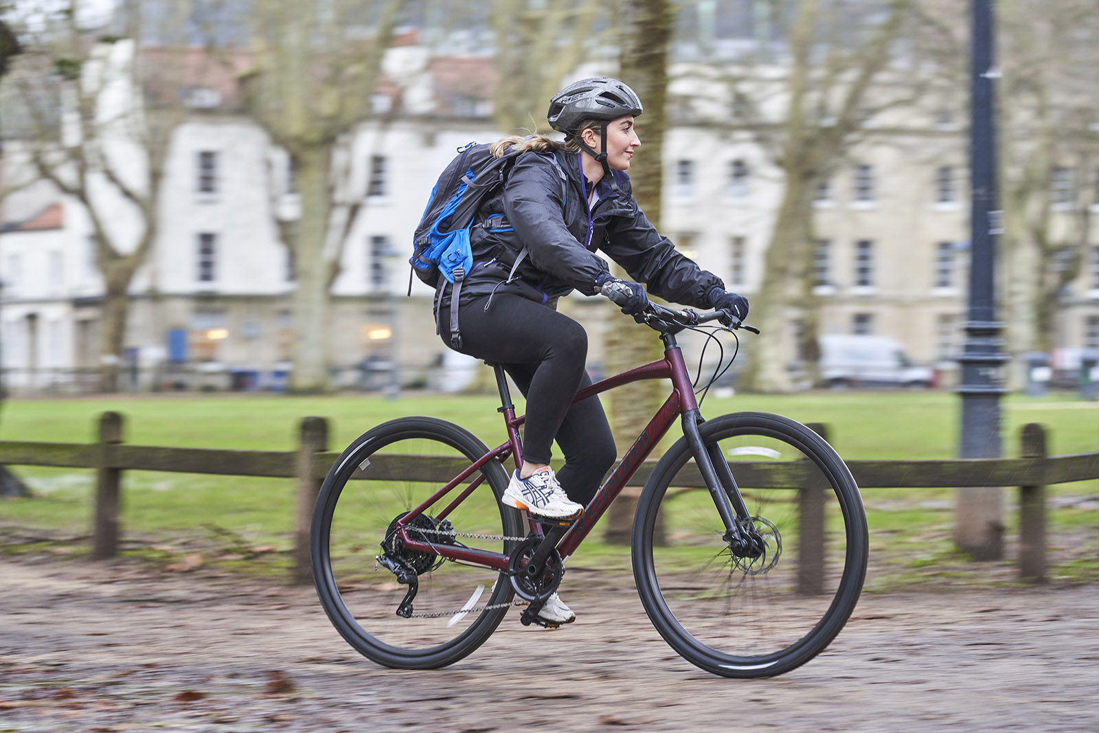 The 2×9-speed drivetrain comes courtesy of Shimano, with a decent range for tackling the hills on your commute. Tektro hydraulic disc brakes give you confident stopping power, while the 35mm Schwalbe tires barrel over urban debris.
